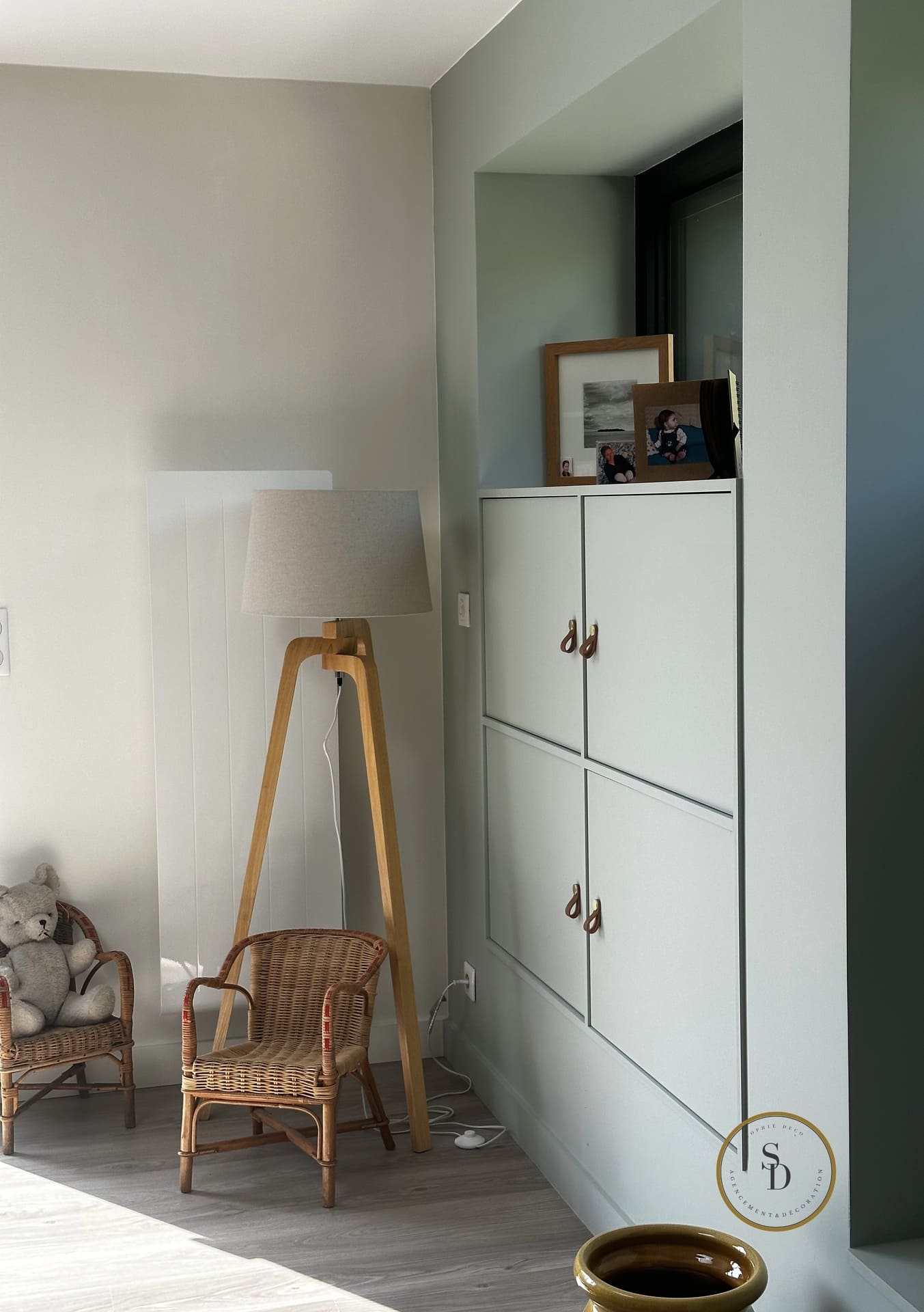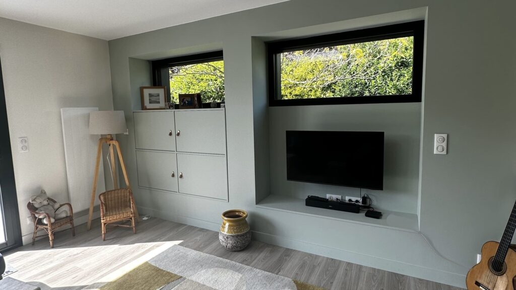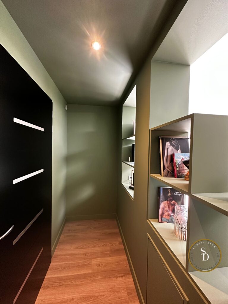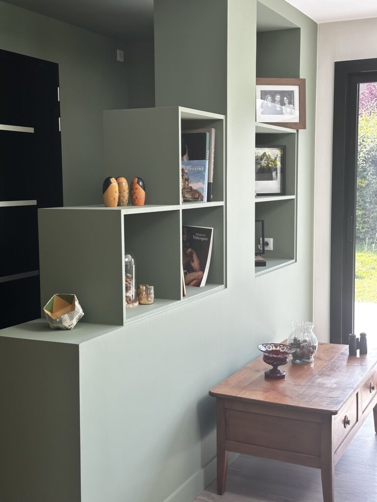 En placo et médium avec une mise en peinture teinte vert de vérone